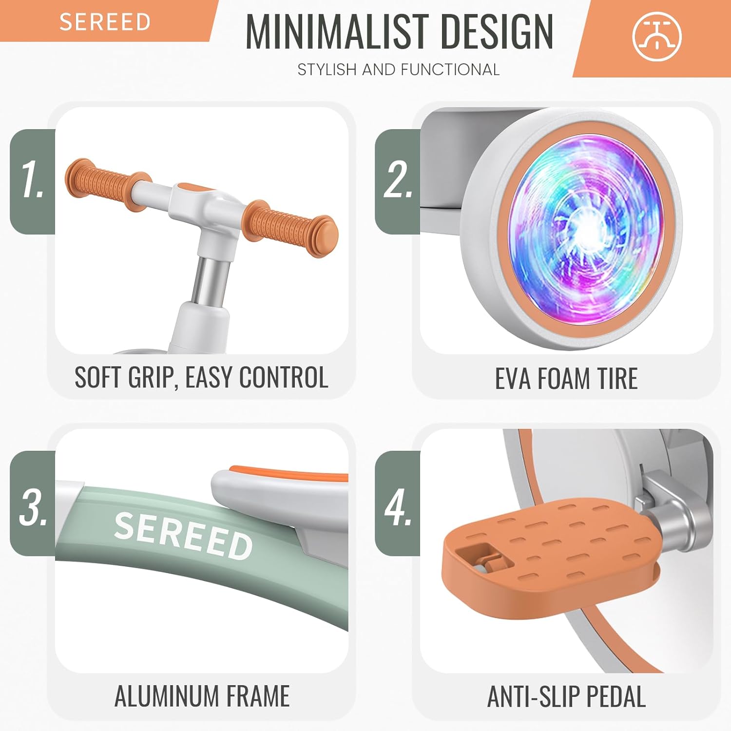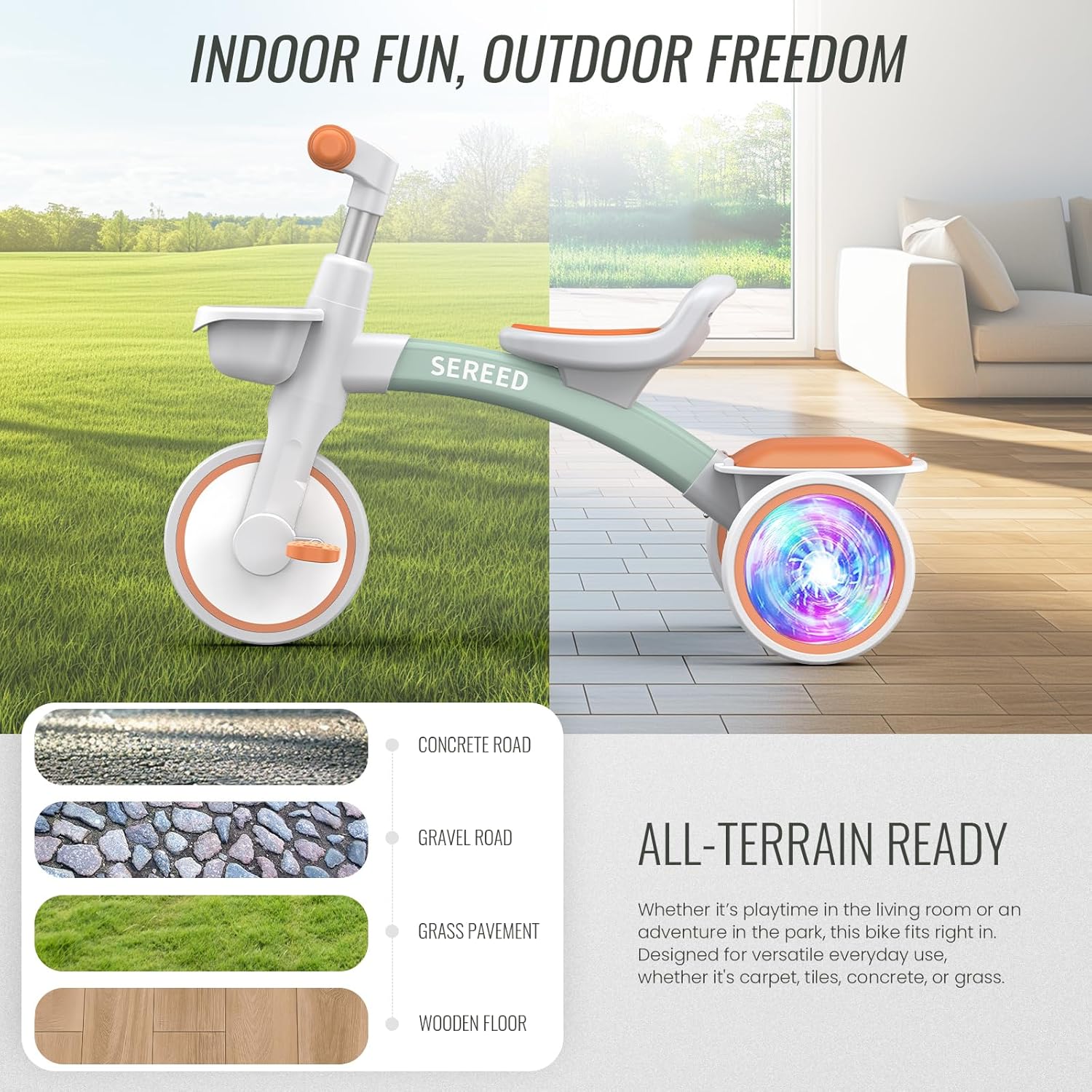 - SMOOTH RIDE: SEREED tricycle features precision bearings with unique pedals design, making it easier and smoother for little ones to ride and explore their world.